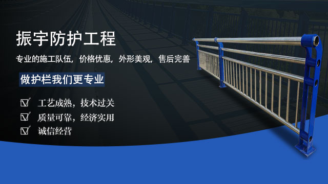 山东振宇钢铁有限公司是一家专业经营:铝合金护拦、灯光护栏、灯光栏杆、景观护栏、景观栏杆、桥梁护栏、不锈钢护栏、防撞护栏、河道护栏、不锈钢栏杆、防撞栏杆、桥梁栏杆、河道栏杆、304不锈钢复合管、不锈钢复合管护栏、201不锈钢复合管、桥梁护栏、不锈钢碳素钢管、不锈钢复合管等产品,公司成立以来一直把确保了产...